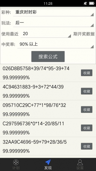 软件可以按不同的玩法一键获得高命中率计划,也可以对公式进行搜索、收藏、过滤制作自己的计划。