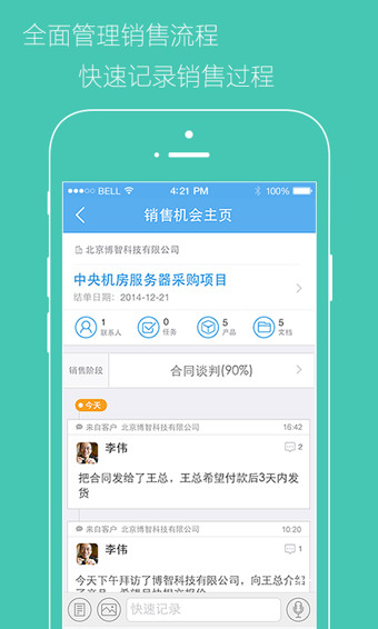1、客户资源流失:客户页面记录完整客户信息、所有沟通细节,同步云端,恒久保留。2、管理不透明:仪表盘,让销售“过程、结果、行为”清晰可见,管理层能随时随地,掌握项目实时进展,精准预测业绩,大幅提升赢率。