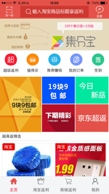 1、9块9包邮:精选商品,低价超值,9块9包邮还返利!2、值得买:每天一款超值爆款,超高返利,只为你而返!