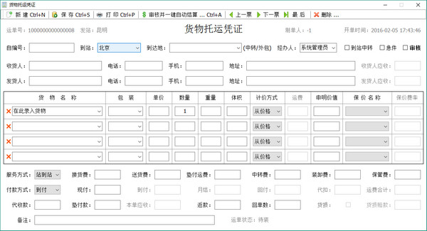 收货人→货物→单价、收货人→付款方式、收货人→到站、收货人→到达地,系统能自动记住并在选择客户时自动填入。