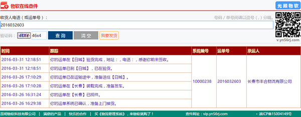 客户可在 www.yn56rj.com/a 进行物流跟踪,为你节省不菲的单独建站费用,有效减少人工查件带来的工作量,可用手机查件,可将其集成到你自己的网站上,可自由添加系统预设之外的自定义查件信息。
