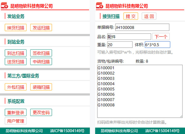 系统采用Code39编码打印货物条码标签并能智能可控的按件数输出,可自定义条码格式和使用外部条码,扫码平台拥有全程8个环节的扫描控制,系统能检查出货差和漏配等问题,有效提高物流质量。