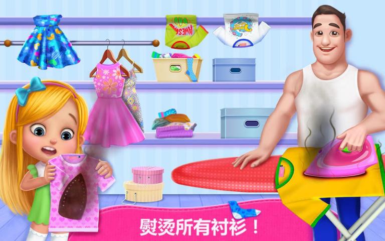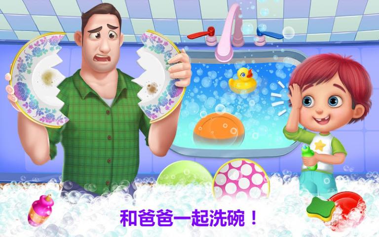 《爸爸的小帮手DaddysLittleHelper》是由TabTale提供的一款整理房屋的休闲游戏。糊涂的爸爸做不好任何事情!帮助爸爸打扫干净并整理好乱七八糟的房子!完成大量充满乐趣且吸引人的家务活,成为这一带最出色的小帮手!洗脏碗,准备晚餐,熨衣服,收拾客厅,等等!是时候照顾爸爸了!噢,这房子真是乱七八糟!你能照顾好爸爸,并在妈妈回家之前整理好房子吗?洗衣服,照料小狗,清洗脏厕所,等等!别忘了在冰箱上给妈妈留张爱心便条!帮忙打扫房子真是太疯狂了(尤其是当妈妈不在家时!)
