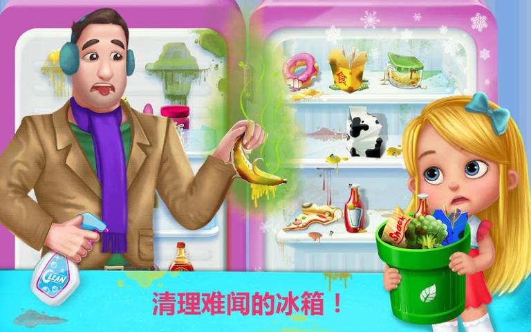-清理脏乱的冰箱,和爸爸一起把冰箱里的东西摆放好!