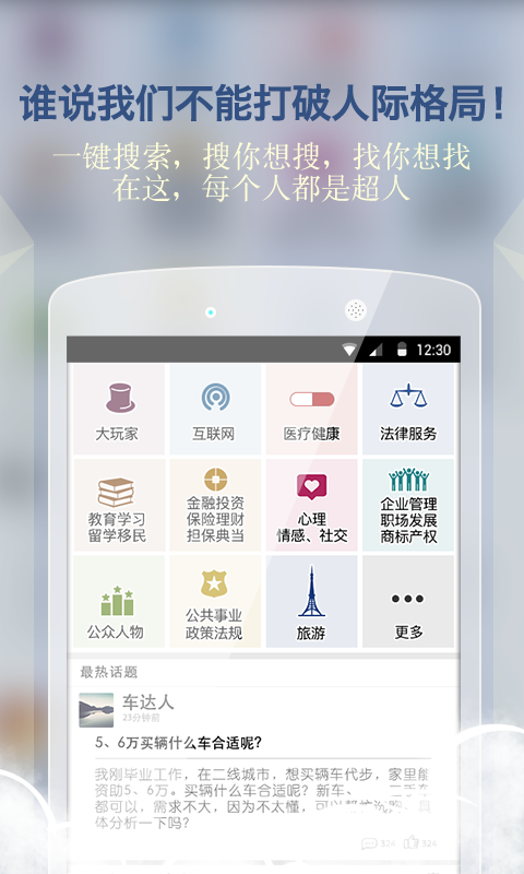 1、这里的每一位用户,都可以利用零碎时间帮助别人,实现个人知识经验变现的同时,更能通过超级圈成为网红大咖。2、在超级圈,没有解决不了的难题,每一个回答也都有所回报。