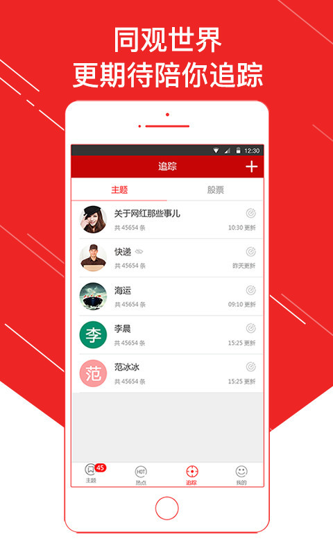 只要你追过的,我们都会时刻关注着,不落下任何突发事件和热点,让你知晓世界的动态。