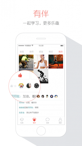 【产品初衷】基于真实学习评价帮用户“找到好私教”,以AA分摊支付的购买形式让私教“更便宜”,通过LBS帮助用户找到好拼友,形成社交,建立兴趣社区。