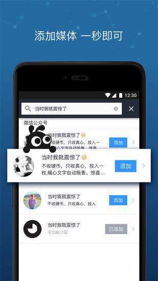 1.有趣有用的媒体,一秒添加2.随时随地添加自己关注的媒体