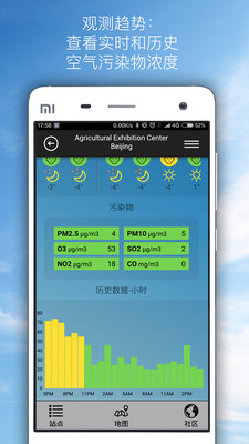 +历史数据图:看一看过去24小时的短期空气污染变化趋势图。