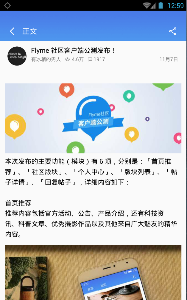 Flyme社区app是一款社交聊天应用,是魅族科技推出的手机应用噢!Flyme社区app可为大家提供最新的科技资讯、科普文章和优秀摄影作品,而大家也可在这里展示自己的才能噢。大家还等什么?快下载Flyme社区app,加入我们吧!【软件特点】