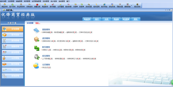 优锋商贸管理软件界面设计简洁,美观,使普通用户能很快掌握软件操作使用。软件广泛适用于企业,商贸公司,个体门店等商业销售管理, 库存管理,财务管理,客户管理,员工管理等场合。【软件特点】