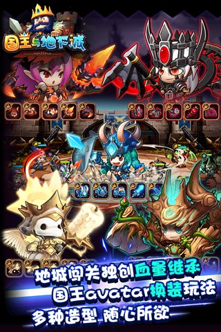 《国王与地下城》(King & Dungeons)是一款充满乐趣的地下城探索游戏,古老而神秘的戈恩泽大陆被魔王撕成碎片,您被命运选中成为这片未知土地的国王,各路天神、恶霸、武士、英灵、超能力者、动漫角色都将应您招募,捍卫荣耀,出征地下城!【游戏特点】