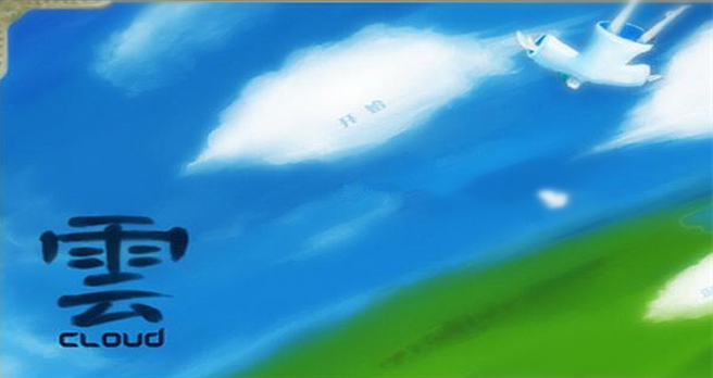 《云》有四种类型的任务。早期的任务类似于教程,玩家可以自由操作以适应游戏控制。玩家在二维平面上试验飞行,飞行速度取决于光标与“君”的距离。通过按下鼠标中键可以实现3D飞行。《云》中有三种类型的云层: