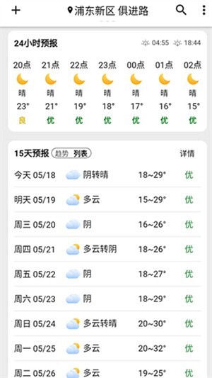 【逐小时天气预报】能让你轻松查看24小时内的天气变化情况,以便提前预防早晚温差过大的问题。