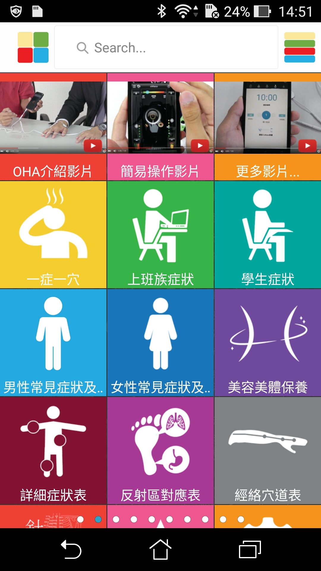 1.OpenHealthcareApp(OHA)是一个网页(HTML5)可控制硬件的浏览器2.首页内建经络、穴道信息