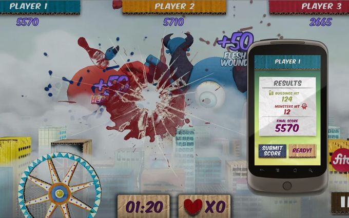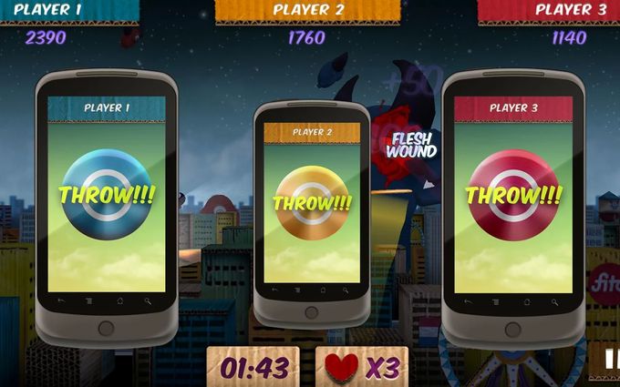 《动感飞盘(FrisbeeRush)》是一款使用设备做手柄,在电脑屏幕上玩耍的游戏。点击“PLAYNOW”下载WEB端的游戏,然后打开移动设备上的软件,上面会显示4位字母代码,在网页端开始游戏时需要输入,这样电脑和设备才可连起来。FrisbeeRush纸箱质感的建筑背景加上特别的玩法,还是可以试一试的,不过可能由于设备之间链接的问题,特别是使用网页作为游戏平台使得游戏的流畅度可能有些影响,飞出去的飞盘总感觉略有延迟。