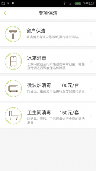 3.保洁服务:家庭保洁、大扫除、新居保洁、窗户保洁、卫生间消毒、冰箱消毒、微波炉消毒