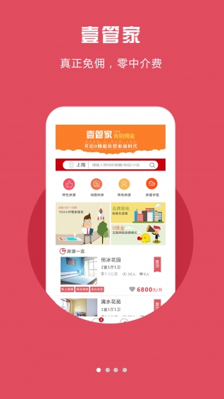 壹管家app涵盖多种找房途径:地铁找房、区域找房、商区找房、地址找房等。壹管家app搭建起与经纪人交流的桥梁,更快速更高效准确找到用户心仪的房子。壹管家倡导的模式是免中介免佣金,为广大白领提供更好的租房体验和舒适生活,实现真正的一步到位入住无忧。壹管家——租房行业新贵,打造免佣免中介、社区化租房、管家式服务的租房生活新篇章!壹管家app解决你租房、维修等烦恼,白领租房好选择!一键找房,极速看房,10秒下单,全年无休家政维修、24小时忠诚服务。壹家壹房壹管家,你的生活,我们爱护。