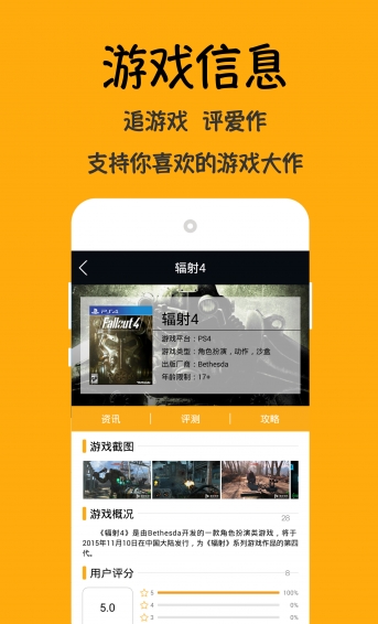 1.全面准确的电玩资料库,多维度的游戏数据筛选功能,让玩家随时随地通过手机锁定心仪大作。2.移动设备浏览游戏资讯与攻略,充实玩家出行,工作与学习时的空闲时间。