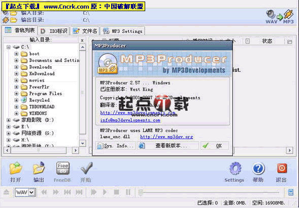 MP3Producer 可以将音乐 CD 快速地抓取为最流行的音频格式 (如:MP3、WAV 或 OGG)。同时,也可以将 WAV 转为 OGG、WAV 转为 MP3,以及 OGG 转为 MP3。
