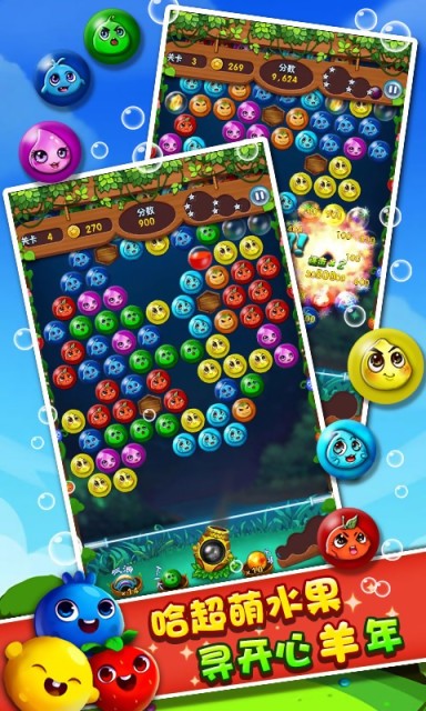 水果泡泡羊,超萌水果,绚丽特效,让你爱不释手,上百关卡,数十道具,任你纵情发挥,弹指一挥间,缤纷水果齐萌翻,化作星星吊炸天,快和你的小伙伴一起挑战吧!
