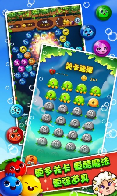(4)萌翻水果,魔幻泡泡,更多道具关卡,让你挑战极限,百玩不厌。