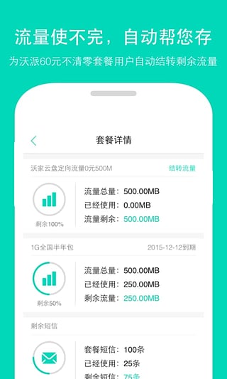 沃派套餐剩余流量不清零,月月转结流量币;