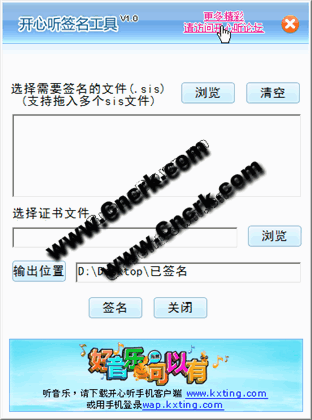 打开开心听签名工具,选择需要签名的软件(.sis)