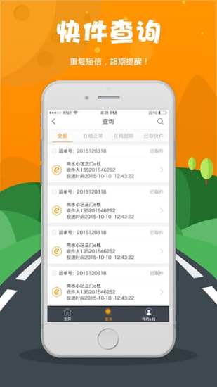【快件查询】:超期快件智能提醒,在箱快件状态实时掌握,投递历史记录一览无余;