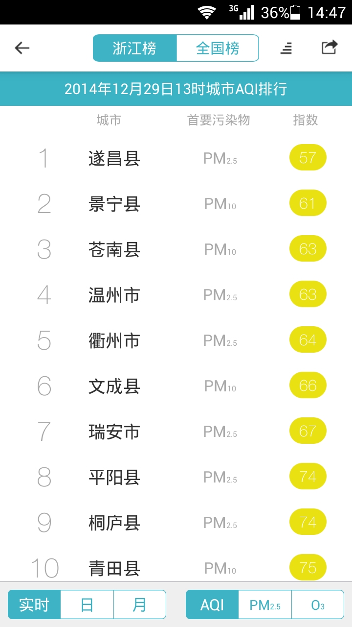 浙江空气质量app是一款极具权威的浙江空气质量检测应用。该应用可检测最新的浙江空气质量,检测的数据由官方统一发布,真实、可靠、科学并且及时 。