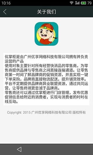 优掌柜app是一款服务于零售终端店铺的移动互联网工具。老板们加入优掌柜后,通过平台资源为其店铺引更多的人流,且巩固其老客户关系,还可参与“扫码赚钱”和“活动赚钱”还能享受到品牌商的直接返现利益。