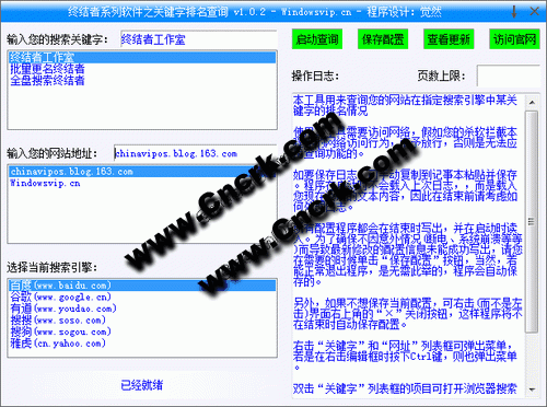本工具用来查询您的网站在指定搜索引擎中某关键字的排名情况