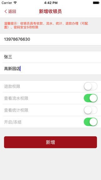 3. 实现收银员管理,根据业务需求配置收银员的权限