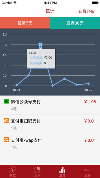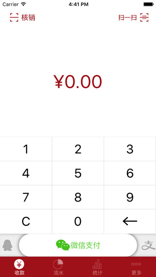 1. 一键收款,支持微信扫码支付、微信付款码收款方式