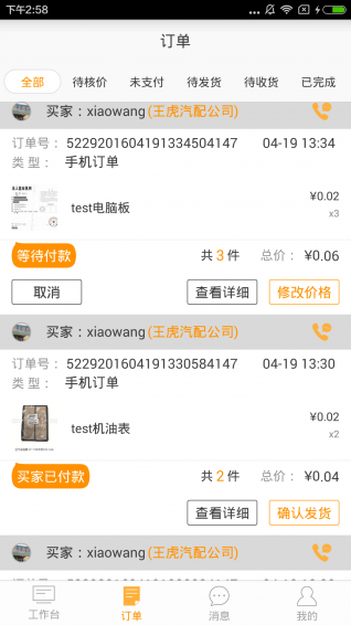 2、订单提醒,每笔订单状态变化都会发来APP推送消息,告诉您下一步进入什么操作,方便您及时处理订单。