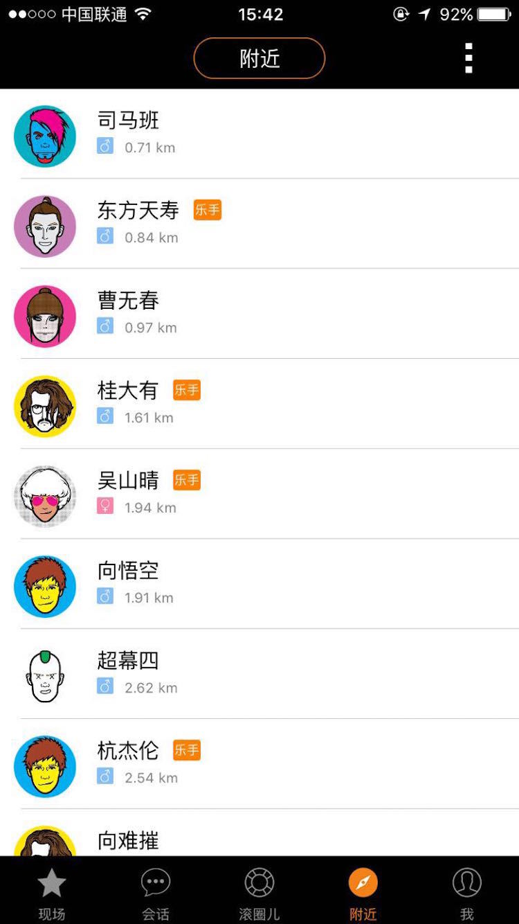 是不是看烦了白底黑字的聊天室?炸毛的聊天室是黑色的,而且每个人的气泡颜色都是有特色的。您可以和周围的人吐槽某个吉他手的弦弹断了,或者在漫长的调音时间一起约酒,甚至二手交易,一起拼车回家等等。