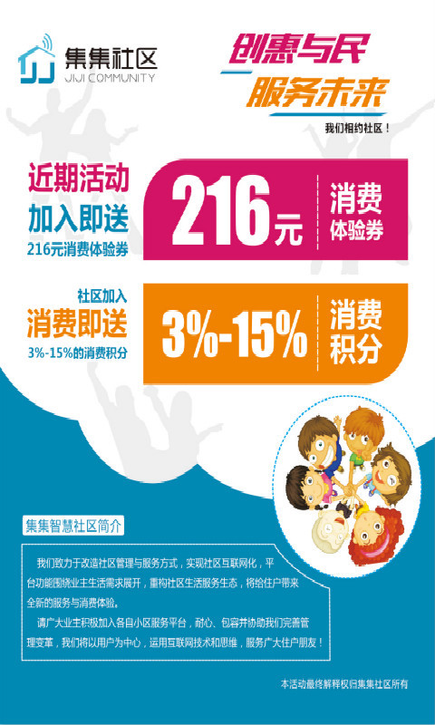 集集社区是一款专注移动端社区生活服务,主要运用互联网技术为社区管理机构或公司提供具有前瞻性的管理系统与服务系统,大幅提升企业管理水平,服务能力与服务效率,同时使社区业主获得基于手机移动端的生活相关服务,整合城市资源为社区业主创新生活服务,包括服务的效率,使用服务的实惠。为商家开发社区客户群体,挖掘社区共享经济的潜力,创造新的价值。