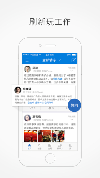 多空间切换。公司动态记录同事工作动态。