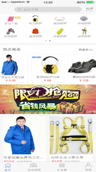 易加劳保是一款手机在线购物应用。该应用是专用于劳保行业用户购买,听力、眼部、呼吸、手部、足部、身体、居家、高空等方面的防护用品均有,质量保障,价格优惠。