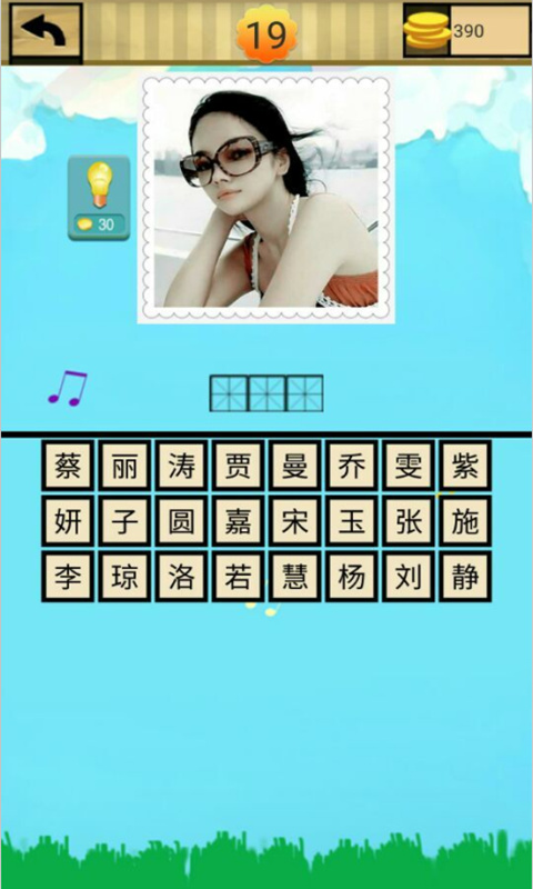 这是一款不用流量看图猜明星游戏,考考自己认识多少明星,通过看明星脸的靓照,猜出明星的名字。考验自己在娱乐明星领域的认识面。坐车,排队,睡前都可一试~是一款不可多得的休闲益智小游戏。在遇到不认识的明星脸,您可以点击答案框直接获取提示,也可以通过求助功能将明星脸图片通过短信、微信、QQ空间和朋友圈等方式分享给好友,让好友帮您一起猜明星。带上您的小伙伴们,一起来看图猜明星吧!