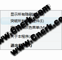 软件小巧绿色,运行后仅在托盘区出现一个小图标,您可右键点击图标弹出控制菜单。菜单中可以选择开启或关闭功能,开启功能后,可恢复一切被灰色禁止的按钮、菜单项,还可显示一切被隐藏的控件。