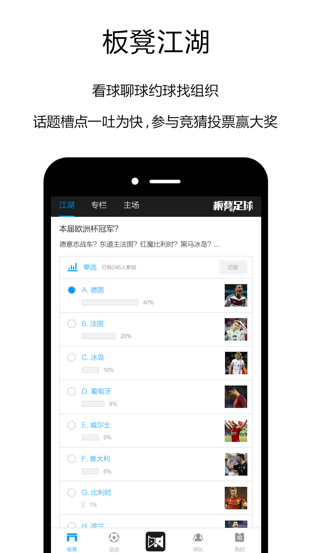 「板凳足球」 -- 业余足球综合服务平台,专注孵化业余赛事,打造草根球队、挖掘明星球员。提供个性的球队展示平台、完善的赛事管理体系、实时准确的战报赛讯,打造属于你的板凳传奇。