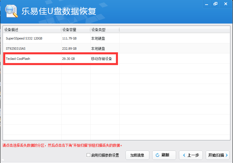 第二步、选择需要分析的分区,然后点"开始扫描"按钮。