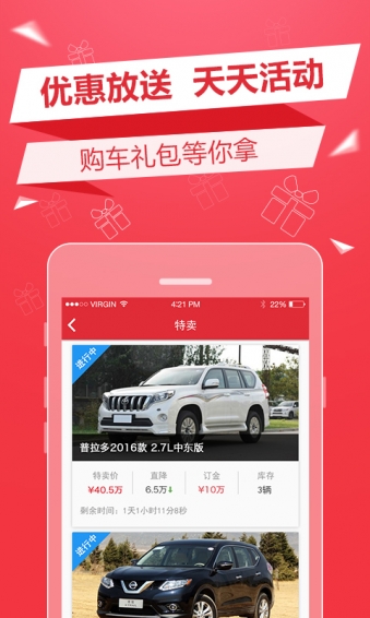 1.热门车:第一时间推出最新火爆车源,有优惠,不加价;2.特卖车:限时特卖,限量特卖,转眼就没了,手得快;