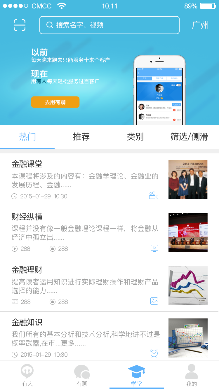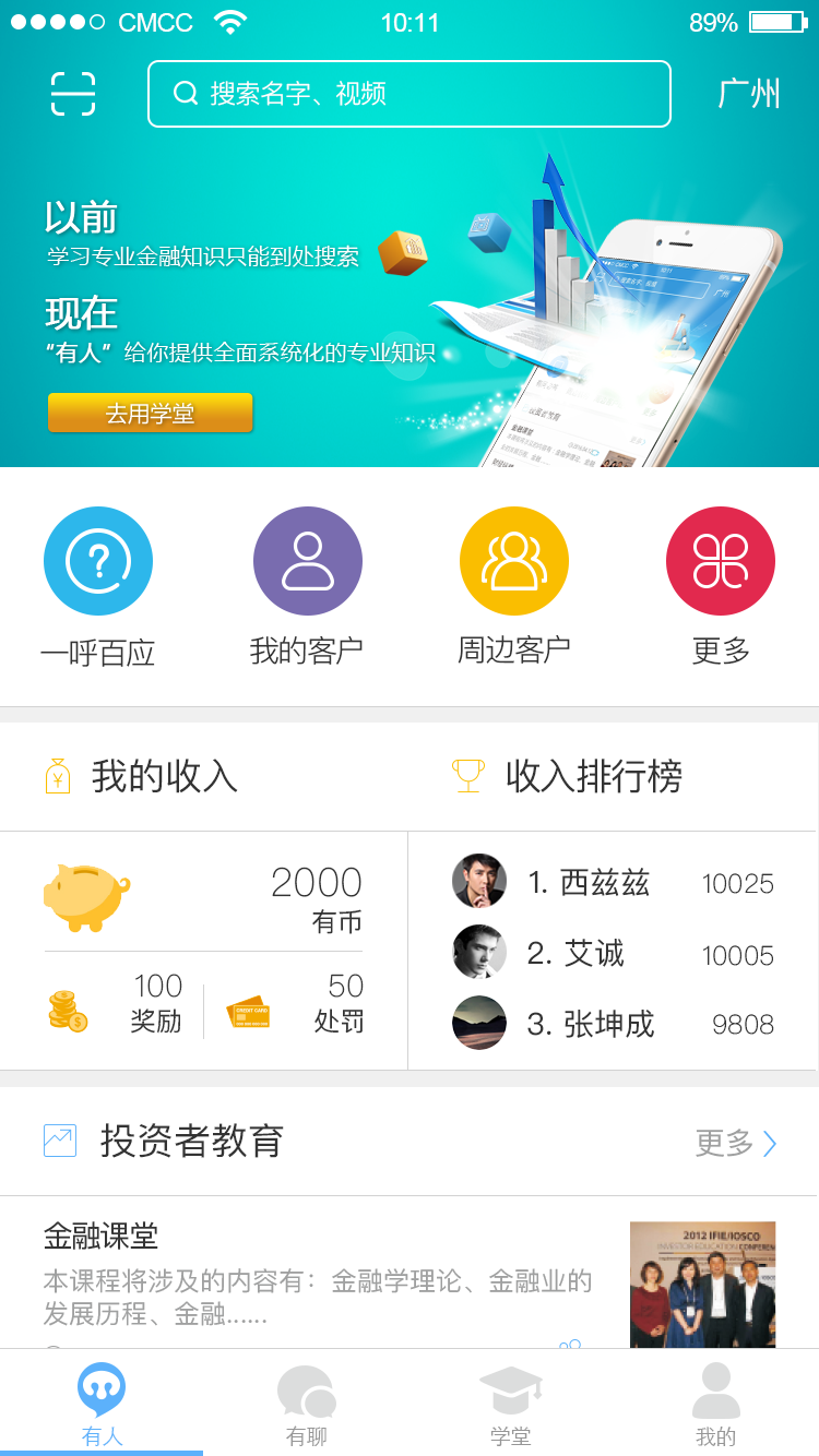 有人机构版app是一款金融理财服务软件,通过有人机构版app,不仅可以随时随地解答客户疑问,为客户提供更好的理财服务,还可以利用碎片时间在线学习财经、金融知识。有人app是广州有人科技推出的投资理财服务型产品,它集咨询、社交、学习、直播等功能于一体,通过问答、投顾、趣味学堂等形式,连接金融机构和用户,让金融机构和用户距离更近,交流更快更轻松。