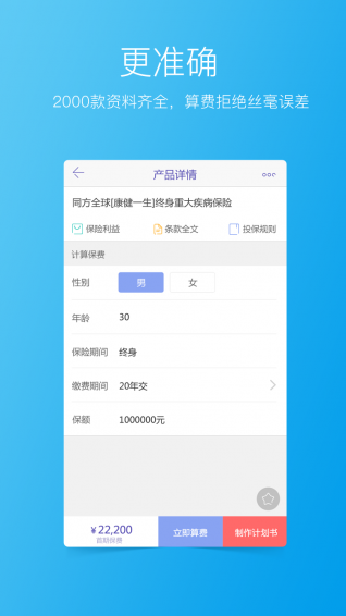 随身保典app是一款手机保险销售员办公应用。其中2000款资料齐全,算费拒绝丝毫误差,1秒钟找到常用产品,省去搜索的时间,提高保险从业者的办工效率。
