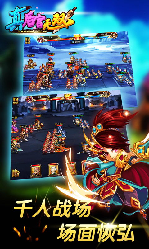 《真后宫无双》是一款Q版三国题材策略卡牌手游。游戏以曹操筑铜雀台而兵发东吴,最终战败的故事为背景展开剧情,玩家在游戏中扮演的小兵通过不断努力,最终达到顶峰。