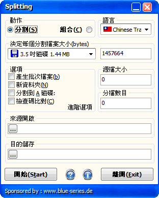 Splitting是一款来自德国的免费文件合并 / 分割软件,内建多国语言,处理合并 / 分割的速度很快,且程序也小,不会占用计算机很大的空间