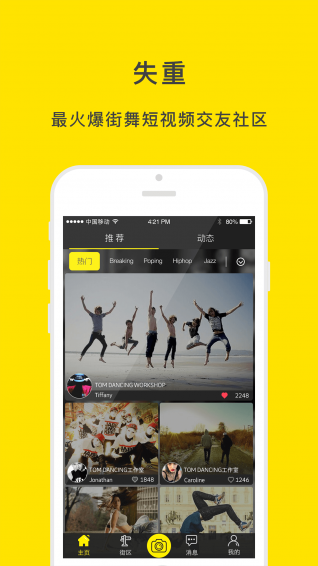 失重APP,街舞爱好者短视频分享社交软件,做街舞爱好者专业的视频分享社区。包涵poping、Breaking、locking、hiphop、Jazz、urbandance、cwalk等各种街舞爱好者视频分类。随时随地的拍摄分享自己的街舞视频,一镜到底让所有喜欢街舞的朋友看到你。在美好的青春年华里留下你作为StreatDancer的身影,让世界为你点赞。无街舞不青春!