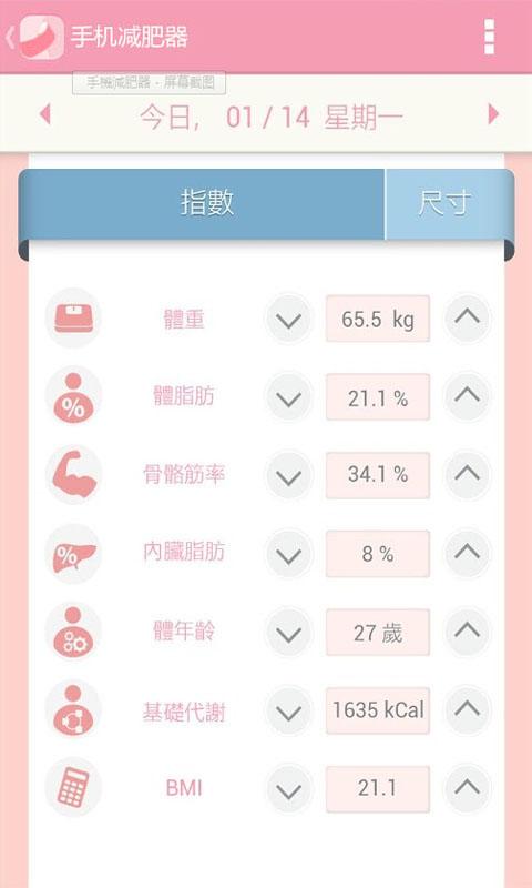 2、体重,体脂肪率,身体指数,身体尺寸全记录 。